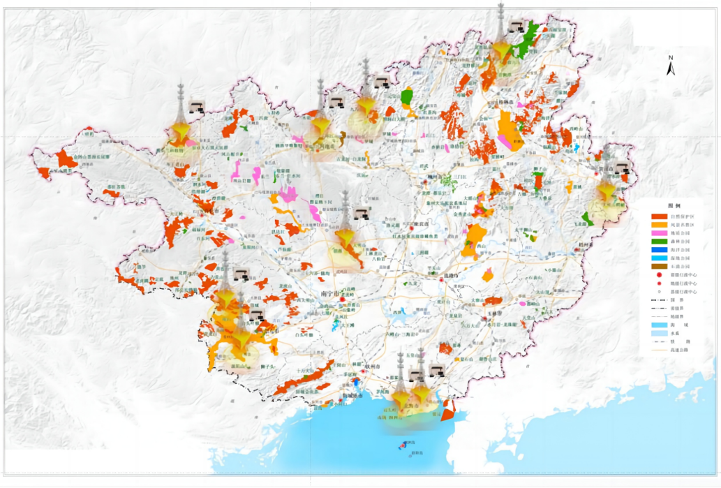 可加载保护地管理边界、功能区划和实景三维模型。
