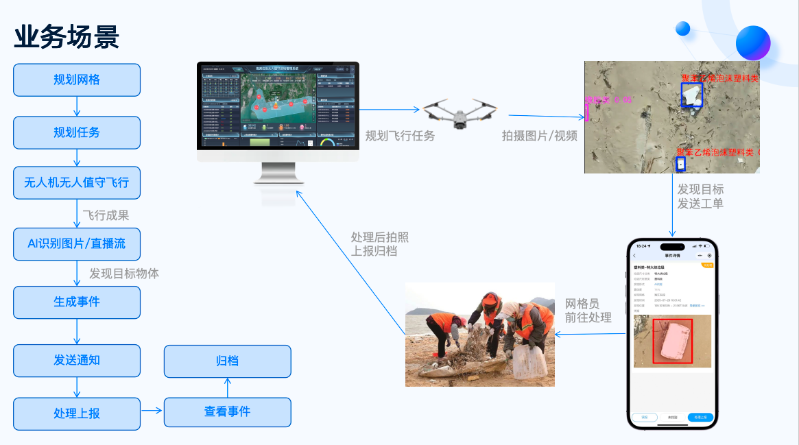 整个流程实现了任务规划自动化、目标识别智能化、事件处理闭环化,极大地提升了网格化巡查管理的效率和响应速度。