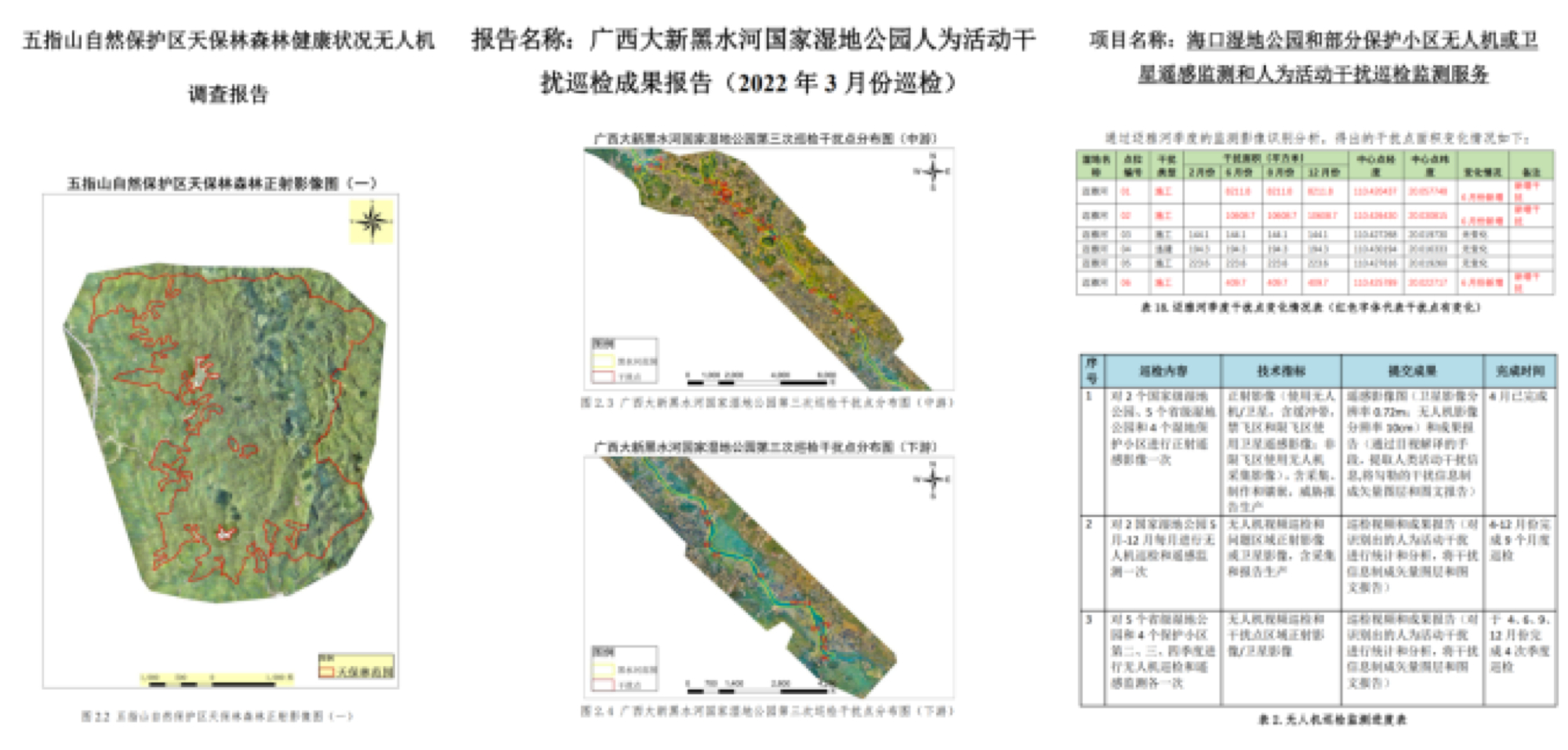 划分重点监测区域,对重点监测区域开展航摄,制作重点监测区域航拍正射影像图。然后通过目视解译的手段,提取人类活动干扰信息,将勾勒的干扰信息制成矢量图层和图文报告,提交 SHP 格式矢量图层和图文报告。结合重点区域的动态变化,对变化区域进行 AI 检测,制作地面覆盖动态变化图。